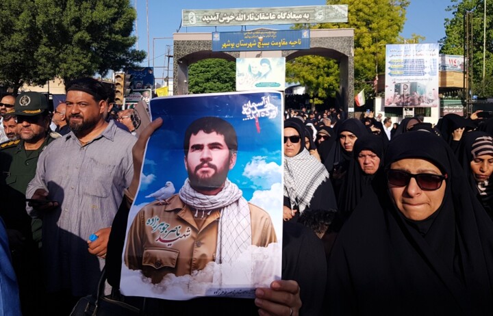 به گزارش ایرنا ، صبح روز شنبه، شهر بوشهر حال و هوایی دیگر داشت. خیابان های منتهی به گلزار شهدای بهشت صادق از نخستین ساعات، میزبان مردمی شد که آمده بودند تا با پیکری وداع کنند که روزی برای عزت این خاک، سینه را سپر کرد.چنان خیابان بسیج مرکزی تا بهشت صادق بوشهر غلغله بود که جا برای سوزن انداختن نبود و چه استقبال باشکوهی به گونه ای که بوشهر سر تعظیم برای میزبانی از فرزند خویش فرود آورده بود.