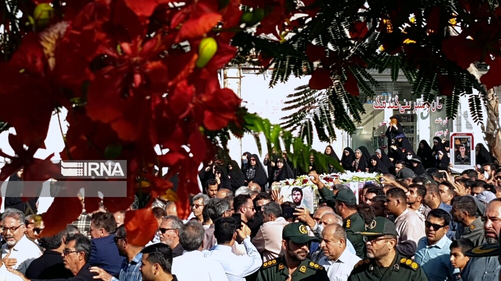در مراسمی باشکوه که با حضور فرماندهان نظامی، مسئولان استانی، خانواده های معظم شهدا، جانبازان، و اقشار مختلف مردم برگزار شد، صدای مرثیه ها درهم تنیده با نوای سرفرازی بود. پرچم سه رنگ جمهوری اسلامی ایران بر تابوت شهید گسترده شده بود و پرچم ها در دستان مردم، رقص غیرت می کردند.