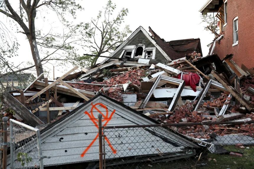 در ایالت میسوری نیز وقوع گردبادی مهیب در منطقه سنت لوئیس منجر به مرگ پنج نفر شده و بیش از 30 نفر به بیمارستان ها منتقل شده اند. شهردار سنت لوئیس، «کارا اسپنسر»، از تخریب گسترده ساختمان ها و از بین رفتن سقف ها و پنجره ها خبر داد. رئیس آتش نشانی این شهر اعلام کرد که حدود 20 بلوک شهری دچار خسارت جدی شده اند و 500 نیروی امدادی در حال جست وجو و نجات هستند.