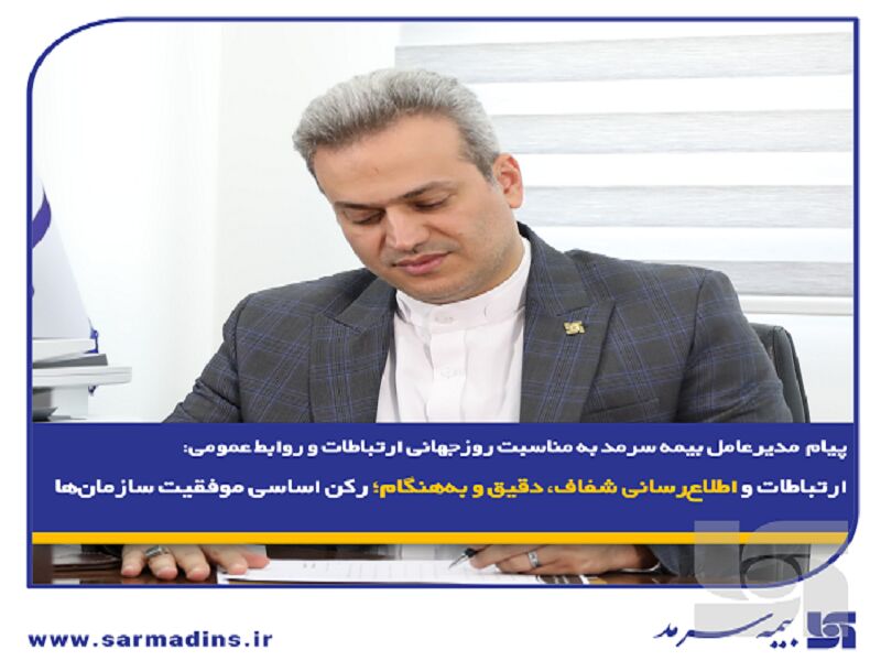 بیست وهفتم اردیبهشت ماه، روز جهانی ارتباطات و روابط عمومی، فرصتی ارزشمند است تا از تلاش های بی وقفه و صادقانه تمامی فعالان این عرصه تخصصی در سراسر کشور، به ویژه همکاران پرتلاشم در روابط عمومی شرکت بیمه سرمد، قدردانی نمایم.