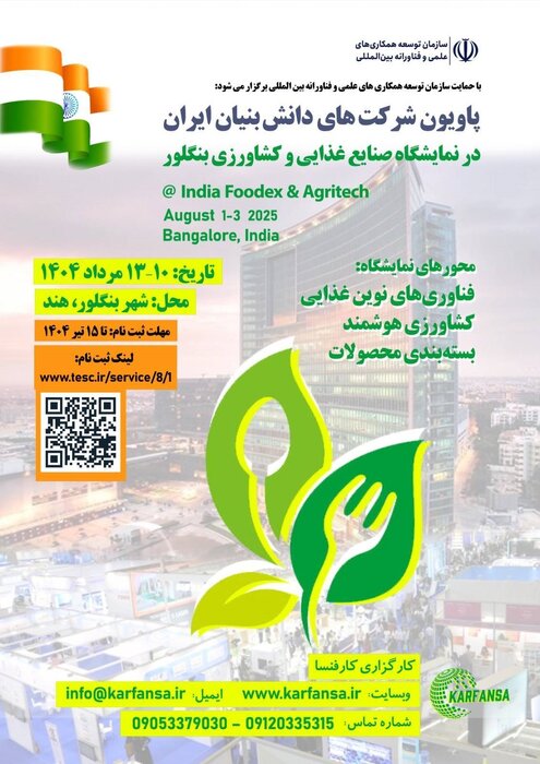 به گزارش روز سه شنبه گروه علمی ایرنا از معاونت علمی، فناوری و اقتصاد دانش بنیان ریاست جمهوری، نمایشگاه صنایع غذایی و کشاورزی بنگلور که به عنوان برجسته ترین نمایشگاه ماشین آلات کشاورزی و فناوری در آسیای جنوبی شناخته می شود، از 10 تا 13 مرداد 1404 در شهر بنگلور هند برگزار خواهد شد.