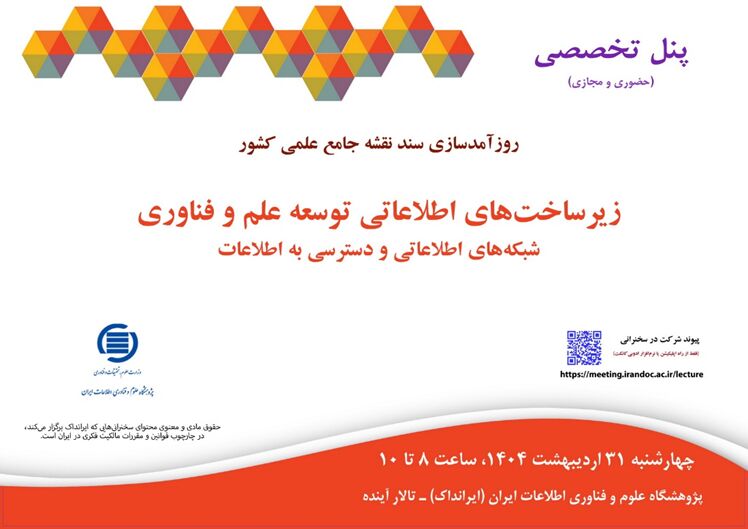 این سخنرانی از ساعت 8 تا 10، به صورت حضوری در تالار آینده ایرانداک و به صورت مجازی در پیوند https://meeting.irandoc.ac.ir/lecture برای علاقه مندان برگزار می شود.