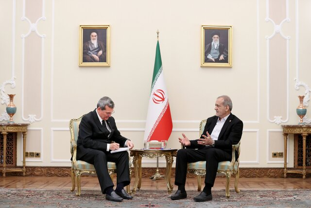 پزشکیان در این دیدار با بیان اینکه جمهوری اسلامی ایران علاقمند به ارتقای سطح روابط و گسترش همکاری ها در عرصه های مختلف با همسایگان و به خصوص ترکمنستان است، اظهار کرد: علاوه بر همکاری در زمینه تبادل گاز، جمهوری اسلامی ایران علاقمند به گسترش همکاری های مشترک با ترکمنستان در عرصه های مختلف اقتصادی، فرهنگی، سرمایه گذاری، راه، حمل و نقل، ترانزیت و دیگر بخش ها است. تعمیق و تقویت همکاری ها و به خصوص سرمایه گذاری های مشترک و متقابل، می تواند، رفاه، آسایش، دوستی و امنیت آینده دو ملت را تضمین کند؛ همان هدفی که رهبر ملی ترکمنستان با برگزاری اجلاس بین المللی صلح و اعتماد به دنبال آن است.