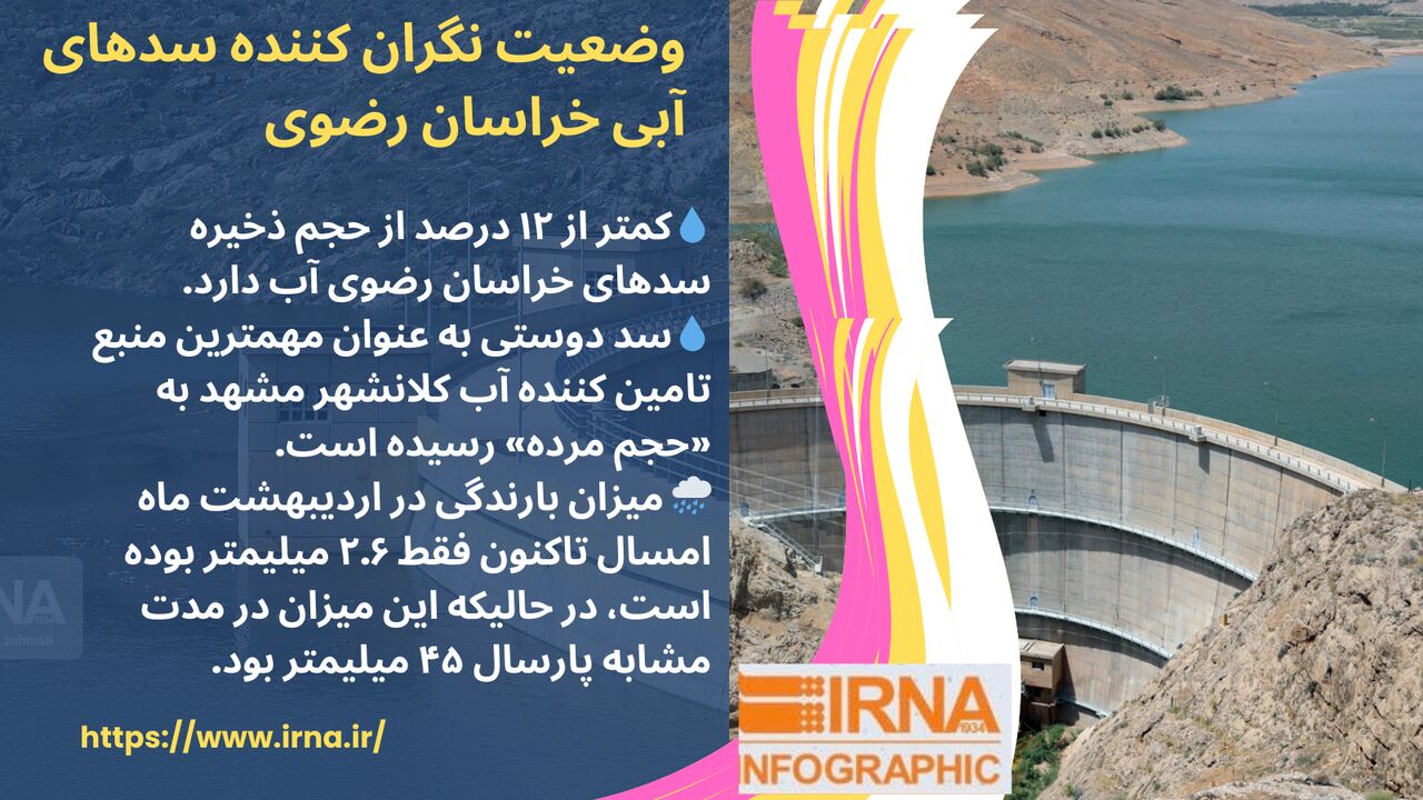 اینفوگرافیک| وضعیت نگران کننده ذخایر آبی در خراسان رضوی