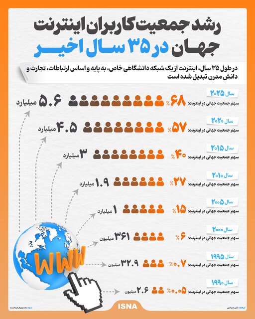 اینفوگرافیک/ رشد جمعیت کاربران اینترنت جهان در 35 سال اخیر