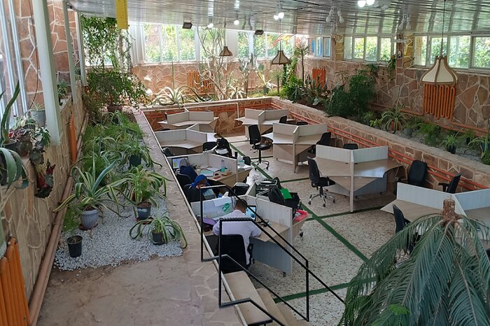 مدیرعامل کارخانه نوآوری کرمانشاه گفت: این کارخانه با الگوبرداری از نمونه ای در آمستردام، گلخانه های این کارخانه به فضای کاری اشتراکی نیز تبدیل شد؛ ترکیبی از گل و گیاه در کنار میز و فضای کار که محیطی دلنشین برای فعالیت افراد و تیم های خلاق فراهم آورده است.