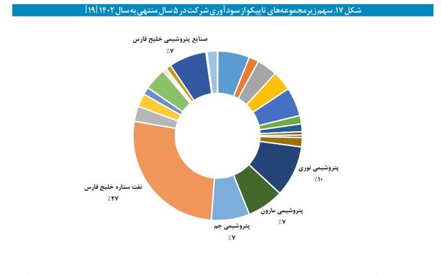 دقت در نمودار فوق نشان می دهد سود خالص به دست آمده در شرکت به صورت حداکثری تقسیم می شود (به طور میانگین بیش از 92 درصد در طول دوره 7 ساله منتهی به خرداد سال 1403) و کاهش نسبت سود تقسیمی به سود خالص در سال 1399 به دلیل رشد بسیار زیاد سود خالص این شرکت بوده است. بر همین اساس می توان ادعا کرد سازمان تأمین اجتماعی، به دلیل افزایش شدید مصارف خود، در حال خروج منابع مالی از بنگاه های زیر مجموعه است و این موضوع در میان مدت و بلندمدت موجب تضعیف این بنگاه ها خواهد شد. بررسی صورت های مالی سازمان تأمین اجتماعی در سال های 1397 تا 1401 نشان می دهد حدود 94 درصد سود سرمایه گذاری پرداختی به سازمان از شستا تأمین شده است. از سوی دیگر بررسی صورت های مالی سالانه شستا در سال های منتهی به اردیبهشت 1397 تا 1403 نشان می دهد، حدود 75 درصد سود سهام این شرکت از سه شرکت نفت، گاز و پتروشیمی تأمین، شرکت صدر تأمین و شرکت صبا تامین حاصل می شود.