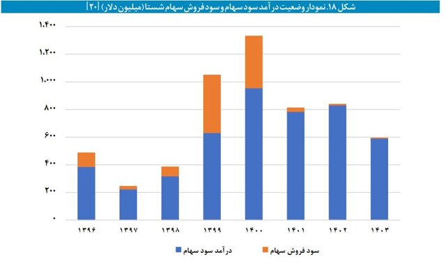 بررسی صورت مالی شستا، در نگاه اول، نشانگر سهم 50 درصدی شرکت تاپیکو و سهم حدود 20 درصدی صبا تأمین در تأمین سود شستا است؛ با این حال و با بررسی دقیق وضعیت سهامداری شرکت صبا تأمین مشخص می شود این شرکت 8.5 درصد از سهام تاپیکو، 19.9 درصد از سهام تاصیکو، 6.7 درصد از سهام تیپیکو و 19 درصد از سهم شرکت سنگ آهن مرکزی را در پرتفوی خود دارد. علاوه بر این شرکت تاپیکو، 17 درصد از سهام شرکت تاصیکو را در زیر مجموعه خود در اختیار دارد.